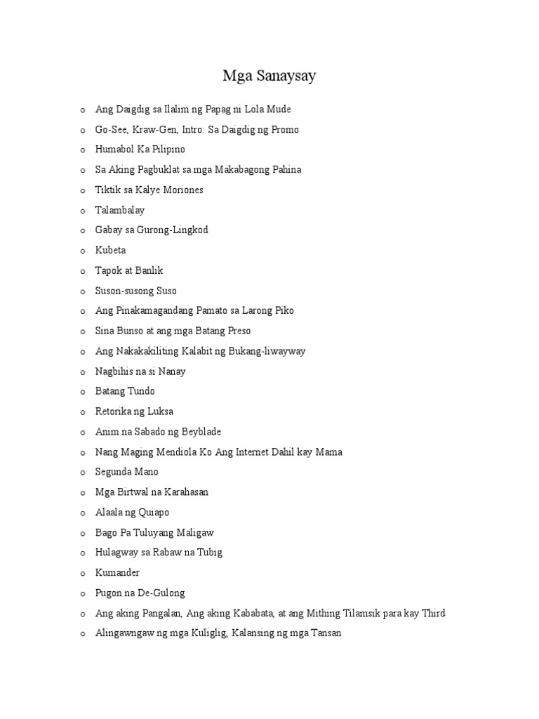 Lasing kalang Matulog kna Youre just drunk go to sleep. Ang pinaglalaban ko lang naman dito ay bakit may mga taong akala mo laging may giyera at trip na trip ang sumalungat o magmagaling kung minsan. Oo ang English ang sinasabing pangkalahatang wika ngunit tayo ay mga Pilipino nararapat lamang na ito ay ating ipagmalaki.