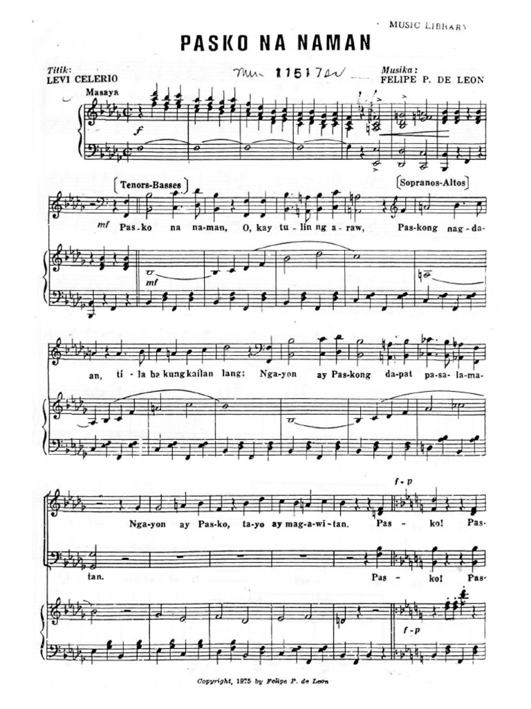 Pasko na naman Verse 1 Am Pasko na naman E7 O kay tulin ng araw Paskong nagdaan Am Tila ba kung kailan lang Ngayon ay Pasko A Dm Dapat pasalamatan Am E Ngayon ay Pasko E A Tayo ay mag-awitan Chorus 1 A Pasko Pasko Pasko Pasko A E Pasko na namang muli Tanging araw A Na ating pinakamimithi A Pasko Pasko Pasko Pasko A D Pasko na. Pasko na naman muli. BPM Tempo of the track in beats per minute.